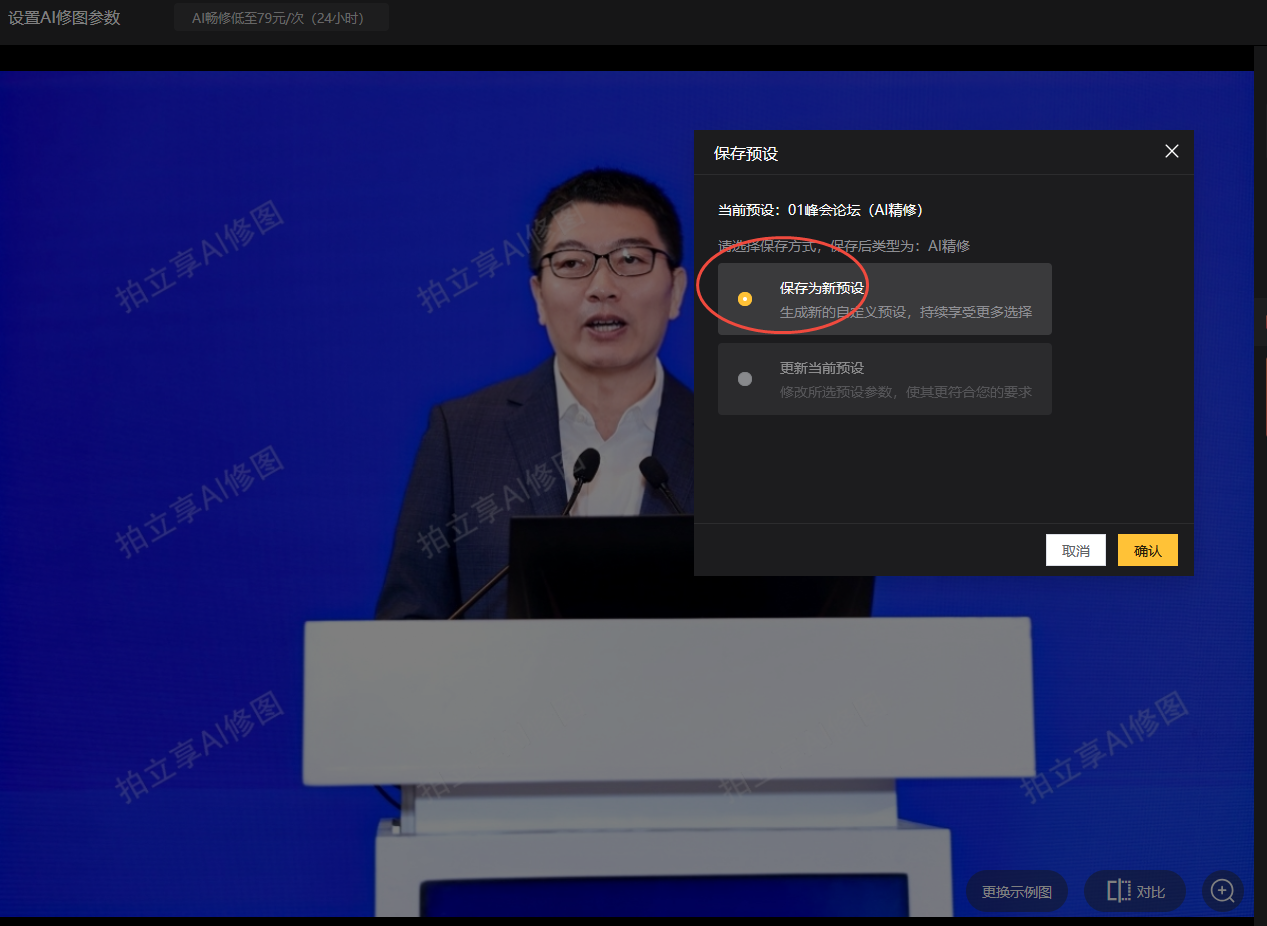 | 开启AI修图 | 确定开启 |