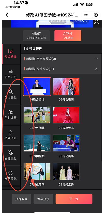 如需将自定义调整后的参数保存供下次活动使用,可点击“保存预设”→选择“保存为新预设”→为自己的预设进行命名(*默认系统预设继续保留无法变更,故此处无法选择“更新当前预设”)