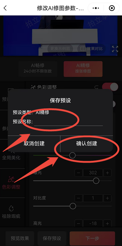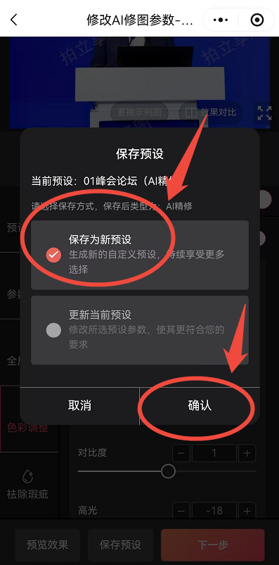 | 保存预设 | 保存为新预设 | 确认创建 |