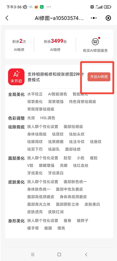 如某个相册在AI畅修功能开启前已经传了部分照片,这部分照片还未修图需补修