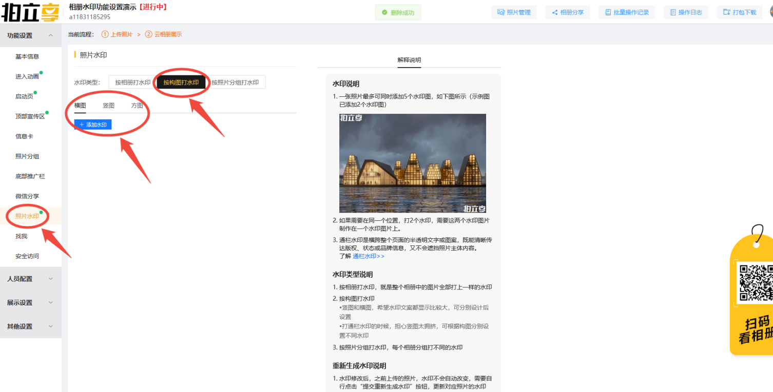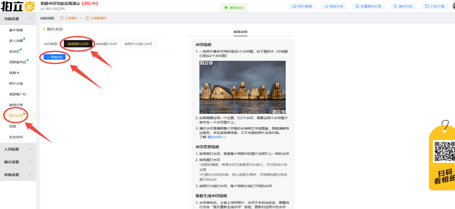 就是整个相册中的照片全部打上一样的水印