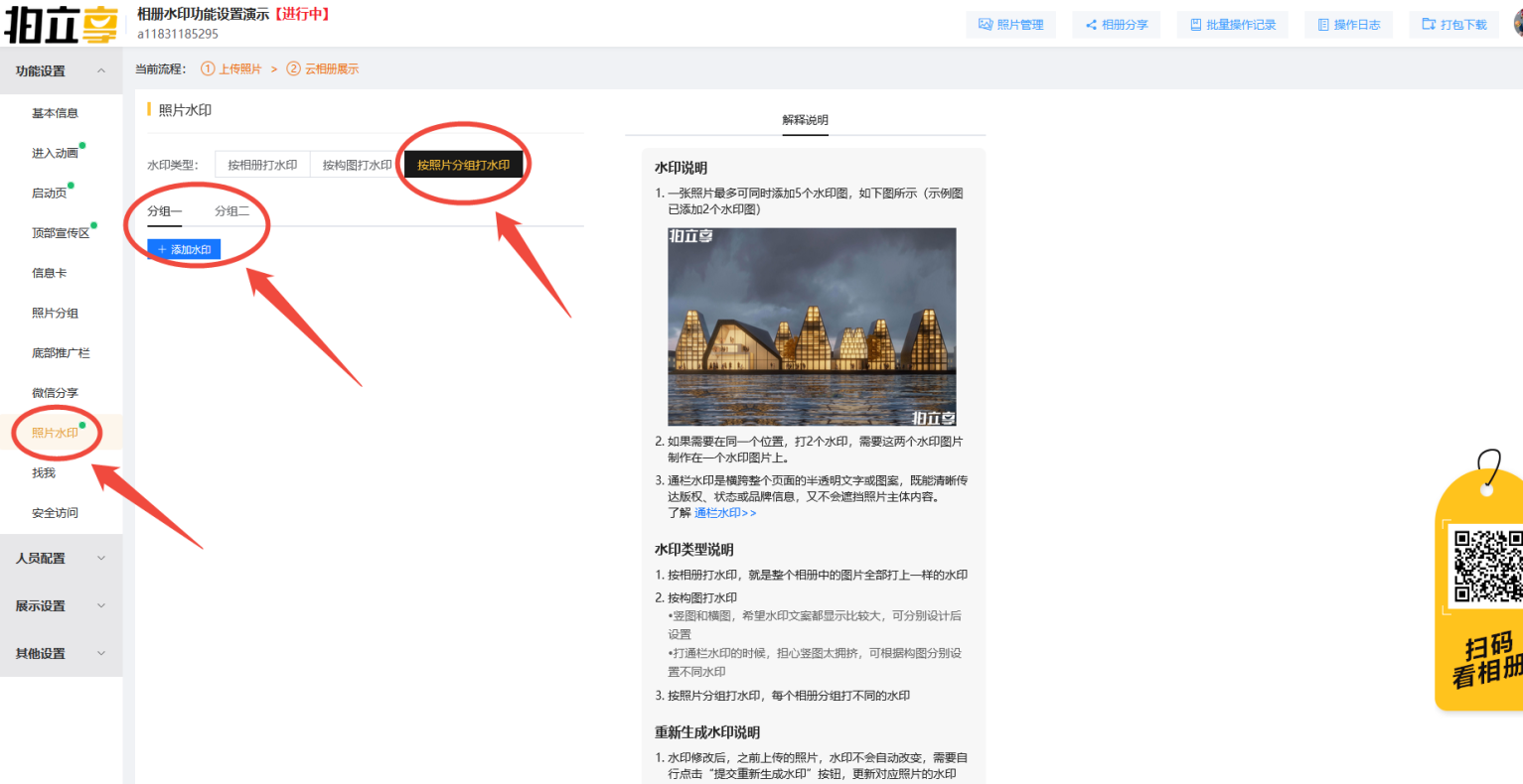如果相册中有照片分组,且每个相册分组需要打不同的水印